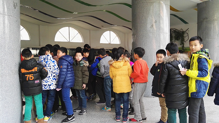 排隊等待參加機器人搏擊賽的小朋友們