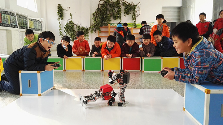 今天的“元旦游園會”舉辦的非常成功,機器人搏擊賽更是讓此次活動錦上添花,也贏得了很多孩子們的注意力。學(xué)生們不自覺地被機器人的魅力吸引,好奇會鼓勵他們在未來的學(xué)習(xí)及生活中會更多的去主動接觸科學(xué)、探索更多關(guān)于機器人的奧秘,對學(xué)生的成才起到了很大的助推作用。未來是屬于孩子們的,未來是屬于科技的。